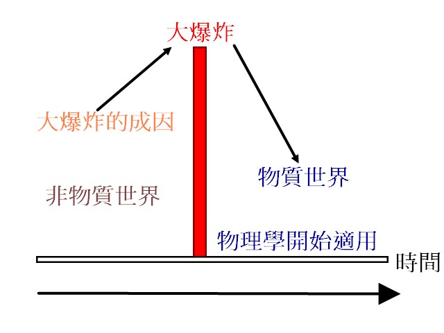 同理,大爆炸前的世界既未有物質,當中的現象也是不需遵守物理定律,而是可以叫東西如此「無中生有」。